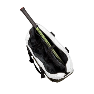 - Compartment features locking zippers to enclose the racket head.
